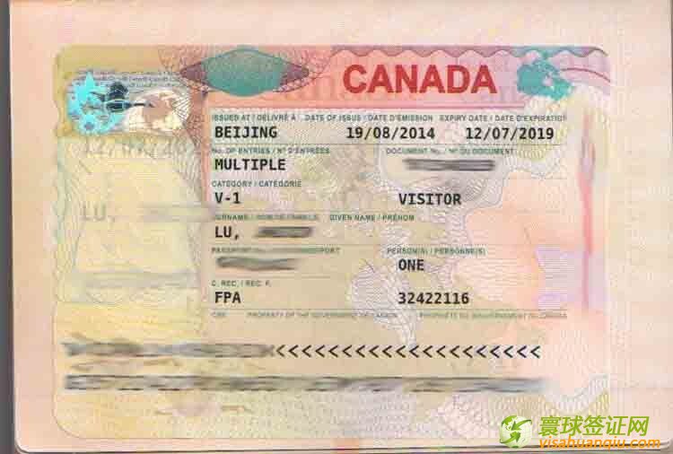 簽證類別:加拿大十年多次旅游簽證通過