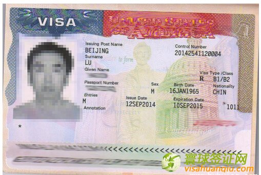 北京市,陸先生的美國(guó)簽證頁(yè):