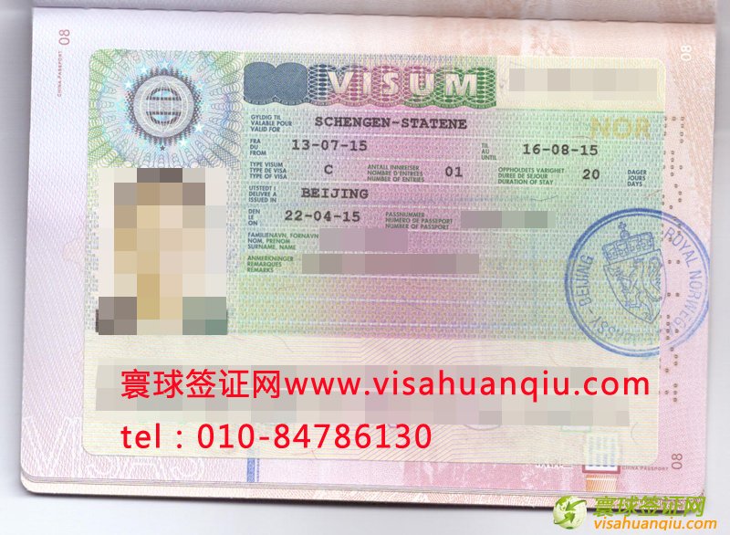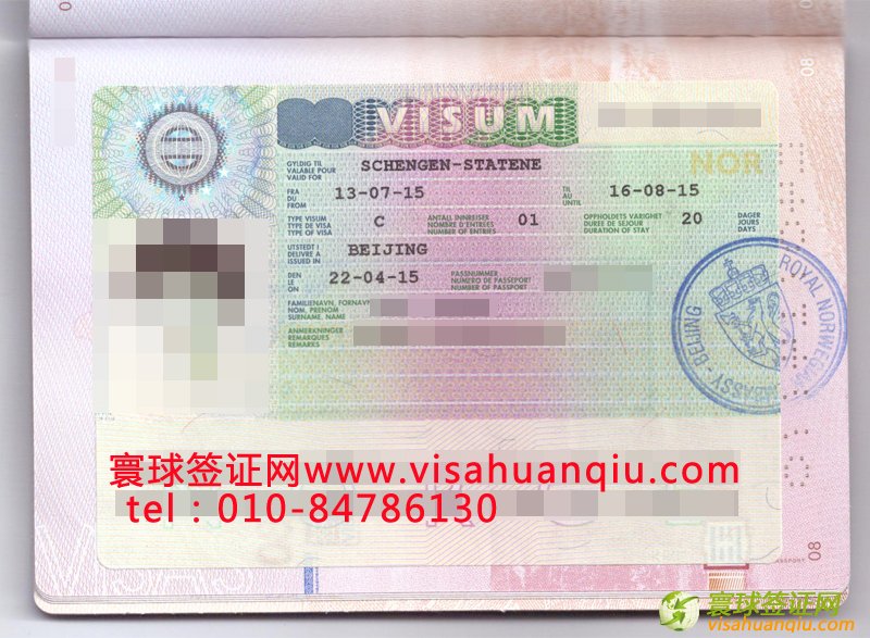劉先生夫婦的挪威旅游簽證頁: