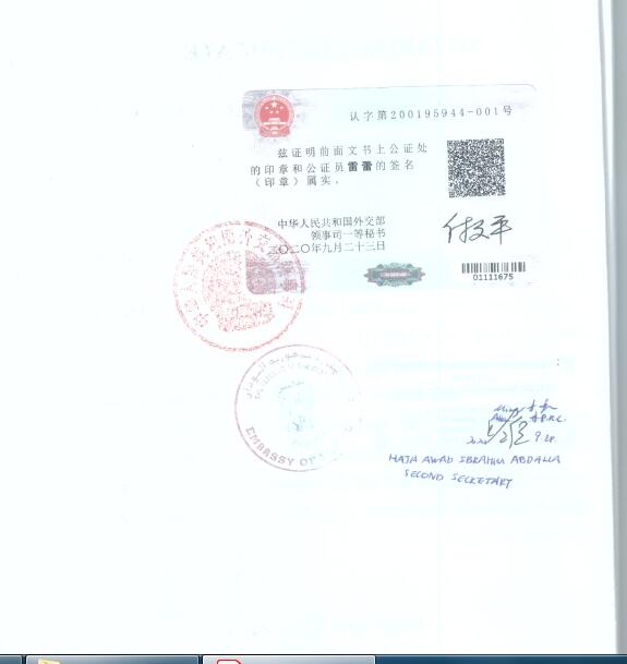 中車集團的員工王先生,通過網上搜索到我們公司的網站,了解到我們公司可以辦理雙認證業務,并與我們公司業務員取到了聯系,并說明了情況,中車集團在蘇丹要注冊公司,需要用到營業執照公證書做蘇丹使館認證,我們知道王先生的情況后,馬上通過拍照看了一下公證書,因為是商業認證我們一定要認證審核清楚,并且中車集團是大公司我們不能中途出現任何問題,耽誤公司的使用時間,審核完畢后就讓王先生把公證書盡快郵寄到我們公司,我們收到公證書后遞交并做了蘇丹雙認證加急,用了5個工作日雙認證就辦理好了,特別的快出乎我們的意料,認證速度驚人,王先生代表中車集團對我們的服務表示感謝!