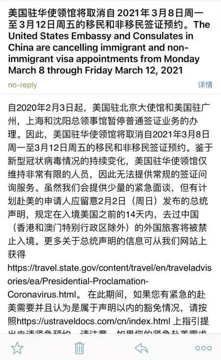 取消所有領館2021年3月8日(周一)至2021年3月12日(周五)的移民和非移民簽證預約。