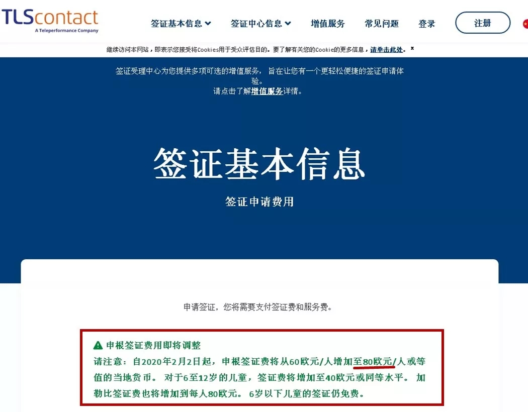 請注意:自2020年2月2日起,申根簽證費將從60歐元/人增加至80歐元/人或等值的當地貨幣。對于6至12歲的兒童,簽證費將增加至40歐元或同等水平。加勒比簽證費也將增加到每人80歐元。6歲以下兒童的簽證仍免費。