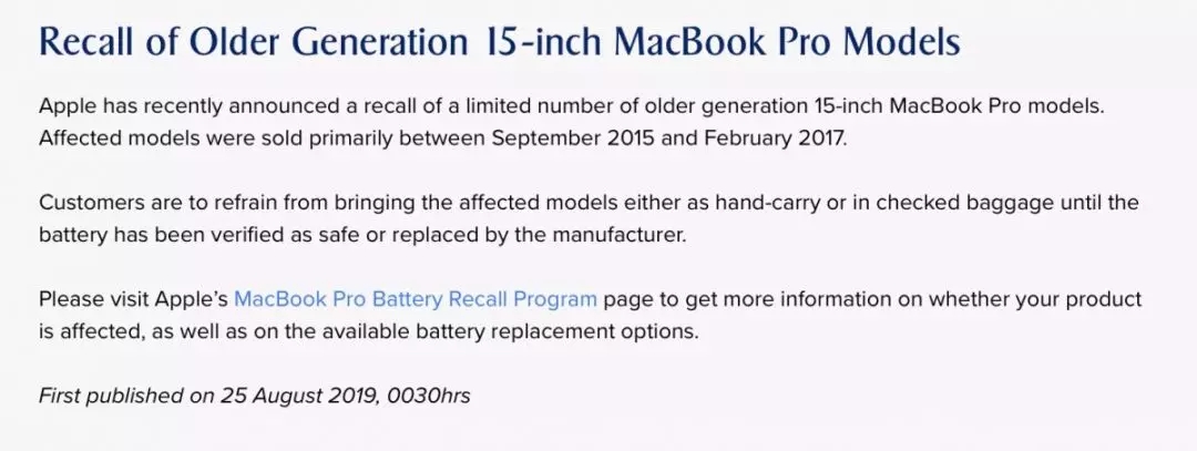 8月26日 ,新加坡航空在官網(wǎng)發(fā)布公告,禁止隨身攜帶或托運部分蘋果電腦上飛機!