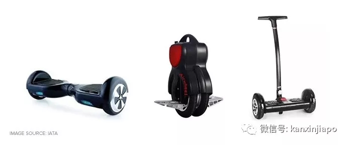 新航禁止托運或隨身攜帶所有小型鋰電池供電的個人交通工具,例如迷你型賽格威、懸滑板、獨輪車、自平衡車、平衡輪等,無論其電池可否拆卸。