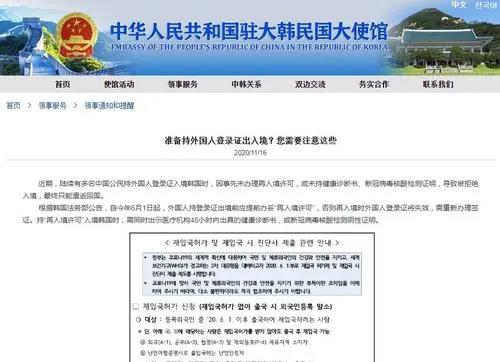 據中國駐韓國大使館網站消息,近期,陸續有多名中國公民持外國人登錄證入境韓國時,因事先未辦理再入境許可,或未持健康診斷書、新冠病毒核酸檢測證明,導致被拒絕入境,最終只能遣返回國。